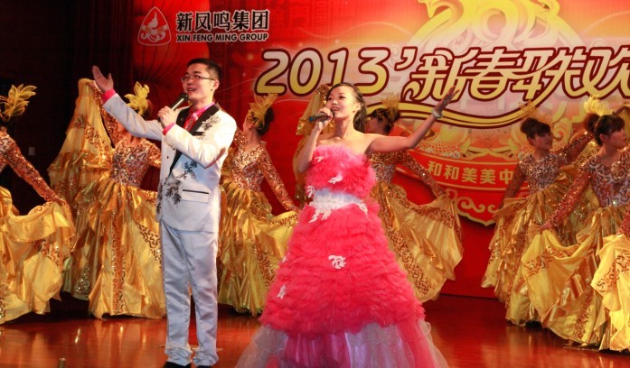 2月2日晚18:30,新凤鸣集团2013迎春晚会在总部报告厅隆重举行,公司董事长、总裁庄奎龙,常务副总裁吴林根,副总裁吴新兰等领导和员工欢聚一堂,喜迎新春。