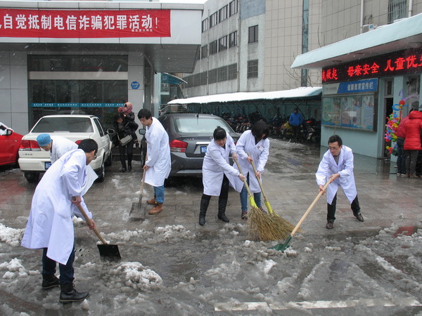 早春的大雪一直持续的下着,罕见的雨雪天气使城市的道路和我院的就医道路被大雪覆盖,给群众的出行带来了很多的麻烦。为了确保路面交通的安全畅通,更好的方便行人的出行及患者的来院就诊,桐乡市妇幼保健院团支部在第一时间快速反应,迅速组织了一支10余人的“青年志愿者扫雪突击队”全力以赴的投入到扫雪的紧急行动中。