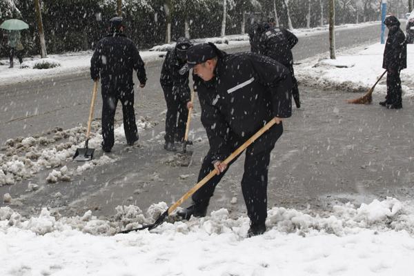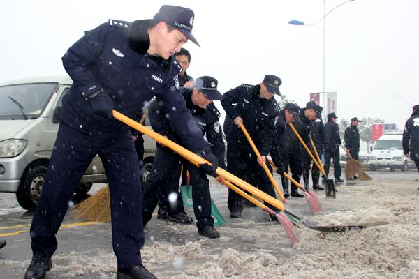 警方组织开展扫雪活动