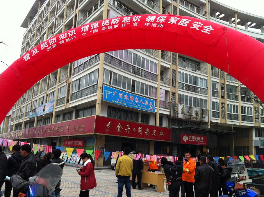为纪念第41个世界民防日,洲泉镇民防志愿者积极参与了“关注民防,平安生活”系列活动。2月27日一大早,民防志愿者来到东田村的鞋材市场开展了民防知识进市场活动,现场设立了咨询展示点,在沿街店面摆放了宣传展板,发放了《民防知识教育读本》,通过大力宣传提高了市场业主防灾减灾、公共安全和民防意识,受到了大家的一致好评。下午的民防志愿者整组点验活动和公共安全知识的讲座,更是增强了大家的责任感和使命感。
