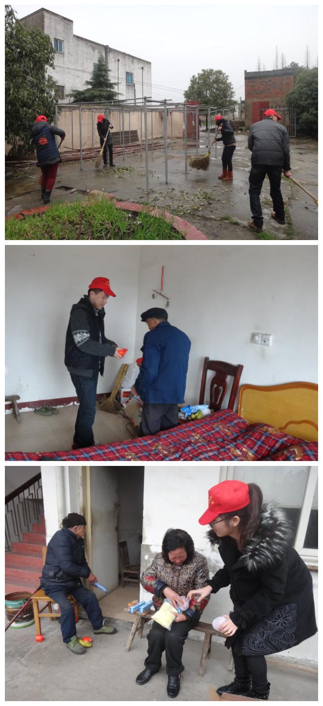 据敬老院的朱院长介绍,敬老院里总共收住了16位“五保”老人,平均年龄75岁,年龄最大的已经有95岁了。来到敬老院后,团员青年们忙着把苹果、香蕉、柑橘等几箱水果搬下车,亲手将水果和毛巾、香皂、牙膏等生活日用品送到每一位老人的手中,并真诚地询问他们生活、饮食、身体健康等方面的情况,叮嘱老人家多注意身体,适时添衣保暖,并祝愿老人们身体健康长寿,能在这里度过一个安详的晚年。敬老院的老人们平时照相的机会很少,团员青年们抓住这一慰问机会,充当起摄影师,为每位老人照相。老人们听说能免费拍照,非常开心,表情都颇为丰富。最后,团员青年们还主动打扫了敬老院的院子、房间,擦窗、扫地,帮助老人们整理内务。临走时,老人们与团员青年们依依惜别,敬老院的工作人员也对其大加赞扬。