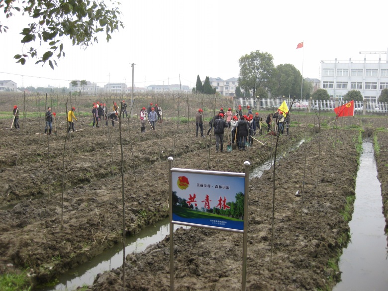 在第35个植树节来临之际,3月11日下午,崇福镇小城市志愿者服务总队的80多名青年志愿者,来到崇福镇五丰村,开展“建设美丽乡村、打造森林崇福”义务植树活动。