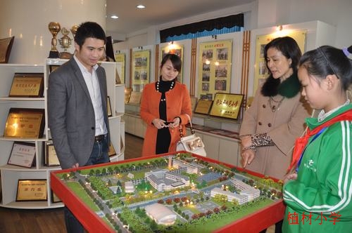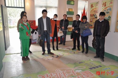 检查组领导在植材小茅盾导游胡滢澐的带领下,参观了少先队队室——七彩童年部落。那里主要是队活动的展示厅,一张张精彩的照片,诉说着植材少先队活动的丰富与多彩。最吸引检查组眼球的还是少先队活动室,那是植材小管家们的办公室。活动室内实施一应齐全,电脑、会议桌、沙发、资料柜……。漫步在教学区,在小导游的带领下,检查组又参观了各中队的特色有形化建设,教室门前的特色班牌,会说话的教室特色墙壁,还有每个中队的中队角,中队旗和队刊也是每个中队必不可少的东西。