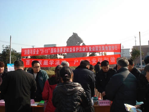 3月12日上午,洲泉镇政府牵头,工商局洲泉所的青年志愿者,联合烟草部门、妇联、综治办等十余个机关部门,开展以 “消费与安全”为主题的2013年3•15国际消费者权益日宣传纪念系列活动,通过设点面对面交流、向消费者发放宣传小册、现场接受咨询服务、现场调处消费纠纷等方式,向广大消费者宣传消费维权相关知识,提高消费维权意识,营造良好的消费维权氛围。此次活动共向消费者发放宣传资料一千余份,受众广,现场气氛热烈,受到广泛好评。