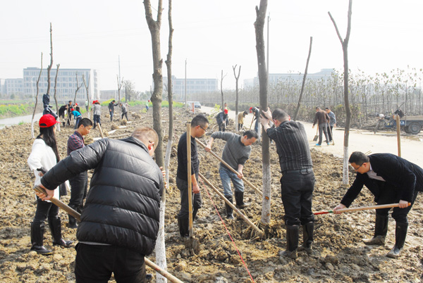多名青年开展植树活动,为创建“森林”城市、营造生态桐乡贡献一份力量。