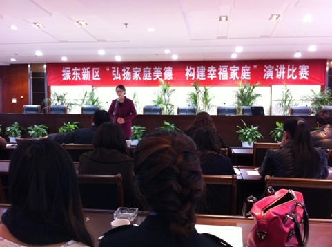 为了进一步弘扬尊老爱幼、夫妻和睦、科学教子、勤劳致富的幸福家庭,大力传播科学、文明、进步的家庭观念,把传统家庭美德延伸到每个家庭,促进家庭健康、幸福、和谐、发展。3月26日下午,振东新区妇女联合会在805会议室举办了“弘扬家庭美德 构建幸福家庭”的演讲比赛,振东新区党委纪委书记诸月松、团委书记蔡明辉、计生办主任杨瑞英、工会主任徐建琳等担任了本次活动的评委,来自振东新区各村、社区及下属单位共12位选手参加了比赛。