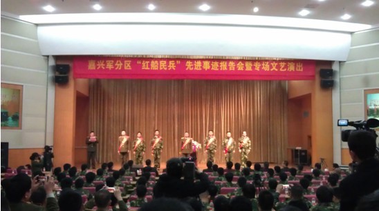3月25日下午,由嘉兴军分区政治部和省军区战士业余演出队主办的“红船民兵”先进事迹报告会暨专场文艺演出在市政府会议厅举行,振东新区团员青年参与了此次活动,观看了表演,听取了先进事迹报告。
