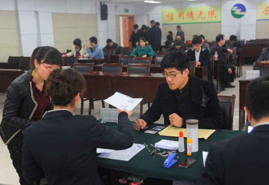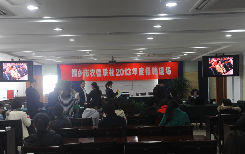 2013年3月28日上午八点半,桐乡信用联社2013年度招聘会在桐乡联社大楼正式开始。本次招聘面向社会公开招聘时间为两天,招聘员工总数达33名,吸引了二百多名青年应聘者前来咨询报名。