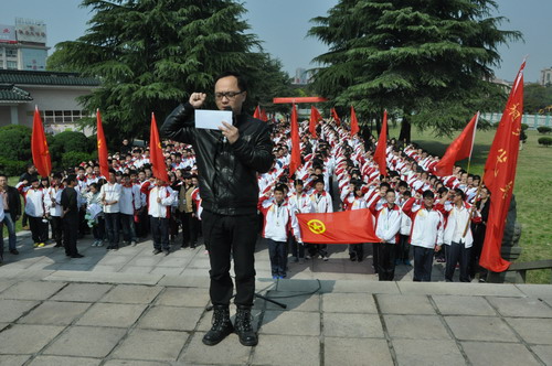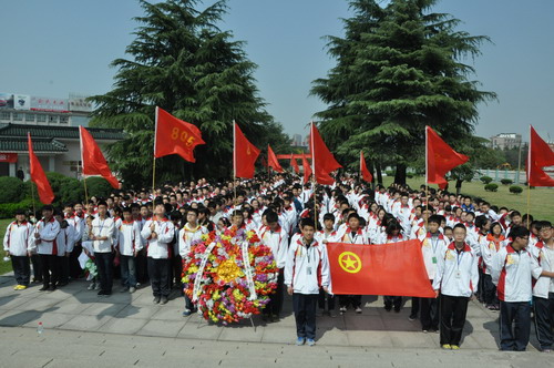 团委俞宏杰老师带领学生在纪念碑前庄严地举起右手宣誓:“牢记英雄姓名,继承先烈遗志,忠于祖国,报效祖国。”