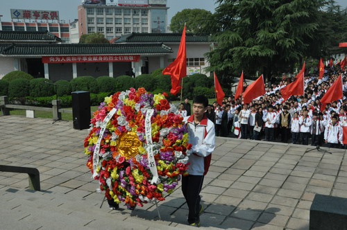 活动由校团委书记徐洁主持。她说:“今天我们怀着无比崇敬的心情,在这里隆重集会,举行祭扫桐乡革命烈士纪念碑活动,深切缅怀伟大的革命先烈。通过追忆革命先烈的英雄事迹,激发大家从我做起,勤奋学习,刻苦钻研的精神,立志把自己培养锻炼成为有修养,负责任,会学习,善求真,身心健康全面发展的学生。”