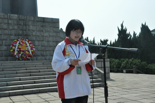 学生代表810班范金媛同学发了言。她表示:“我们忘不了先烈们,我们更忘不了为保卫祖国而牺牲的烈士。是革命烈士们‘魂魄托日月,肝胆映河山’,是你们使我们过上了幸福的生活,给我们创造了一个和平的环境,你们是祖国的优秀儿女,你们是我们学习的楷模!”“我们是祖国的未来,是新世纪的希望。我们必须为祖国奉献我们的全部。未来重任在肩,今朝更应努力。”