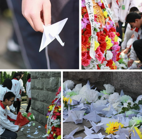 悼念活动结束后,全体师生还绕纪念碑一周,同学们敬献了白花。还有的同学将亲手折的千纸鹤,轻轻地放在纪念碑前,表达对革命先烈的哀思和缅怀之情。全体师生还参观了烈士事迹陈列室和党史人物陈列室。