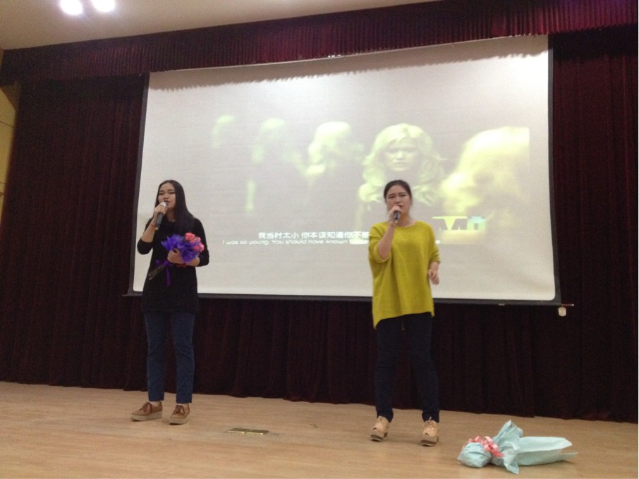 桐高第四届“格莱美”英语歌曲大赛于2013年4月10日在桐高图书馆报告厅顺利举行。本次活动由校团委主办、桐高英语社承办,邀请到了外教David及英语组的6位老师为评委。800多位老师和同学来到现场品味这一场英语歌曲的盛宴。