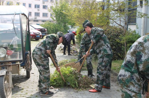 下午二点团员青年们拿着扫帚、拖把、水桶、铁锹等卫生工具,来到香港城,展开了紧张而忙碌的清理。有的拿着扫帚扫、有的用锹铲铲、有的用手拔,大家忙得不亦乐乎。在整个劳动过程中没有人叫苦喊累,甚至有的手被草划破了也毫无怨言。经过一个下午的劳动,大家望着清理干净的街道、花坛、路面,脸上流露出无限的欣慰和喜悦。