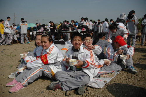 一路上,红旗猎猎,少先队员们欢声笑语,五公里多的路程是那么地短,整个大队竟然比预定时间早到了目的地。到了农庄以后,少先大队兵分两路,一队人马直奔野炊场地,另一队人马则入农庄休闲区放松娱乐。