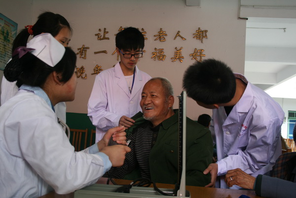 传媒学院的办公室副主任谢伟旋老师也专程从杭州赶来参加了本次活动,传媒学院和卫校的同学为老人表演了节目。卫校康复治疗班的同学和老人进行沟通交流,细致地询问一些关于老人的健康问题,为老人们进行了康复治疗。护理班的同学为他们测量了血压,志愿者们向老人提出健康养身的多项建议。志愿者的优秀表现,得到了老人们的肯定,老人激动地说:“以前每次测量血压都要去医院,现在有了桐乡卫校的师生经常来为我们服务,就能知道自己的身体状况,非常感谢桐乡卫校和传媒学院学生以及学校领导对我们的关心。”