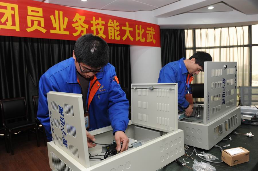 4月23日,崇福广电站联合团支部举行团员青年业务技能大比武, 10多名是团员青年线务员参加了比赛。本次比赛内容包括制作—5线F头、水晶头、--9线防水头等,比赛中大家还学习了如何整理数字电视A型箱。通过比赛,提升了线务员的操作技能和业务水平,同时也起到了相互学习、共同提高的作用。