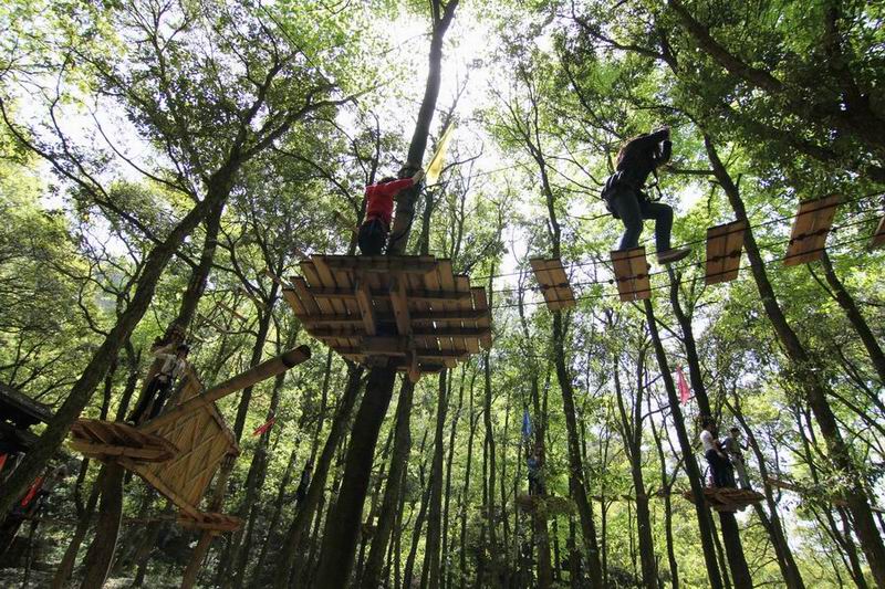 参加拓展人员被分成四队,每个环节大家都热情参与,努力出谋划策,大家从不熟悉到熟悉再到打成一片,整个过程热闹、气氛热烈。最后是空中抓杠、高空行走等刺激项目,大家互相打气、积极协作,互帮互助完成所有项目。一个个项目,让大家对超越自我、团队精神及凝聚力有了更深的理解与体会。