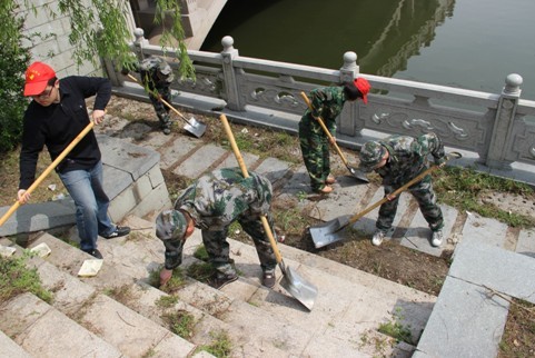 当天,团员志愿者们带着扫帚、铲子来到活动场地。本次义务劳动的范围集中在世贸中心南门口北公桥港岸边的卫生死角。北公桥港岸边环境较为杂乱,杂草丛生,还堆积了一些塑料袋等杂物。面对如此“脏、乱、差”的场面,团员志愿者奋勇争先,不怕脏不怕累,认真清理绿化带里杂草,杂物。