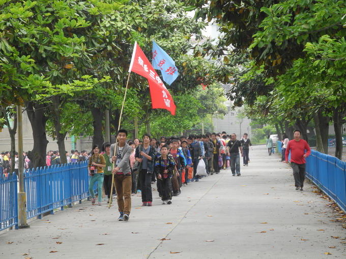出发前,七年级年级主任陆忠坤老师对同学们进行了讲话,告诉大家要有组织,有纪律,在野炊中不能损坏农民的庄稼,不能乱扔垃圾,做一个文明的三中学子,并要求大家注意避让车辆,靠右行走。随后各班清点好人数,在团总支书记杨万超老师的一声号令下,旗手扛着“桐乡三中濮新连”这面鲜艳的红旗走在队伍前面,紧随其后的是各班的班旗,分别是“豌豆班”、“糯米班”、“咸肉班”、“洋葱班”、“春笋班”,同学们排着整齐的队伍浩浩汤汤的向着目的地进发。到了老丝厂,那里的确是一个举行野炊的好地方,没有车水马龙,仿佛远离了城市。在一条10米宽、300多米长的水泥路两侧有一些荒地,也有农民种的油菜,豌豆等农作物,各班按事先安排的区域就位后,在班主任和任课老师们的指导下,各小组成员分工明确,各司其职,同学们开始搭灶、生火、炒菜、煮饭,还有部分同学带来了烧烤炉……好一个热火朝天的场面,看着同学们一个个俨然一个大厨一样,用心的烹饪着这人间的美食,尽管有时候会被烟熏的直掉眼泪,但大家依旧忙碌着,快乐着。活动结束后,各班清理了战场,不留下一点垃圾。在老师的带领下,同学们齐唱了“一二三四歌”,随后,各班吹响了回程的集结号,带着快乐的心情,还有劳动的疲惫安全返回学校。