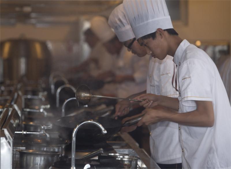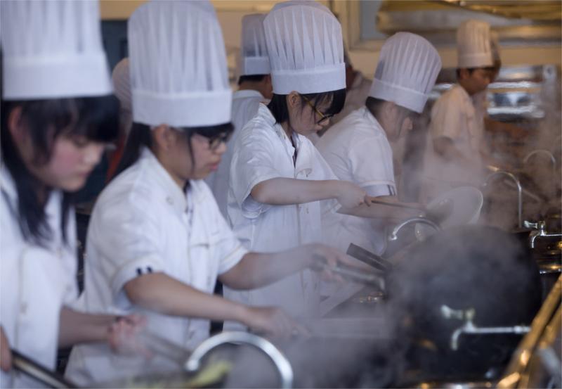 下午两点半,比赛正式开始,本次大赛共分为中式热菜、中式面点、中式冷拼、食品雕刻四个项目,来自旅游烹饪部烹饪专业的90多名选手参加了角逐。比赛中,每位参赛选手严格按照比赛规程,穿着干净整洁的白工作服,戴白工作帽,井然有序地进行比赛。经过1个多小时的奋战,比赛的各个项目都顺利完成。由专业的评委老师对各个项目的比赛作品进行了现场打分。