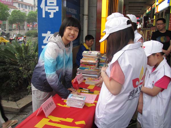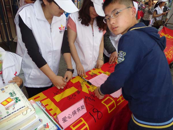 据不完全统计,此次活动我校共有近百名团员青年和少先队员参加此次捐书活动,捐完书后有的同学感言:“人们都说书籍是人类进步的阶梯,所以我希望我的捐出的几本书对民工子弟学校的孩子能有一点点帮助。”捐出一本书,虽然只是一个小小的行动,但是也许一本书温暖着很多人。相信求是学子的爱心能为民工子女们打开一扇窗户,使他们在读书中能快乐的成长!