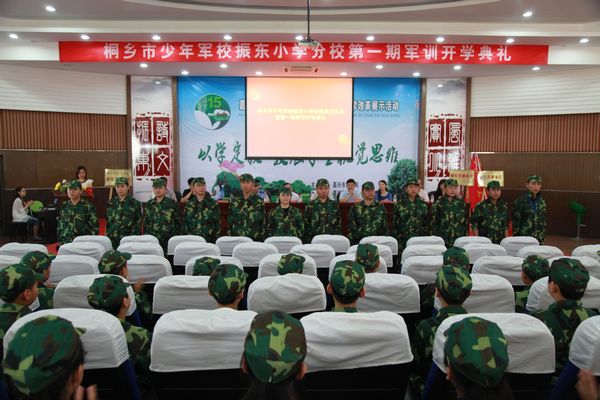 红星闪闪,照亮家国溢彩;军乐声声,激扬岁月流金。2013年5月20日,实小集团振东小学五年级的孩子们心似骄阳一般火热,因为今天是桐乡市少年军校振东小学分校成立暨第一期军训开学典礼的日子,激动、喜悦、兴奋,抒写在孩子们的脸上。