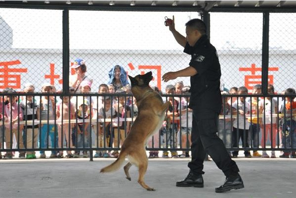 为进一步构建和谐警民关系,加强公安机关与人民群众的联系和沟通,5月20日上午,桐乡市公安局巡特警大队团支部在警犬基地举办了警察开放日活动,桐乡国艺幼儿园的150余名师生代表参加了活动。特警队员们表演了警犬训练、搏击组合、擒敌拳、长棍术、盔甲演练等警务技能,特警队员与警犬的默契配合以及队员们整齐划一的步调、刚劲有力的动作,赢得了现场观看的小朋友们阵阵掌声。活动期间,小朋友们还与特警队员们亲密接触,学打擒敌拳,穿戴盔甲服,活动氛围异常热烈。