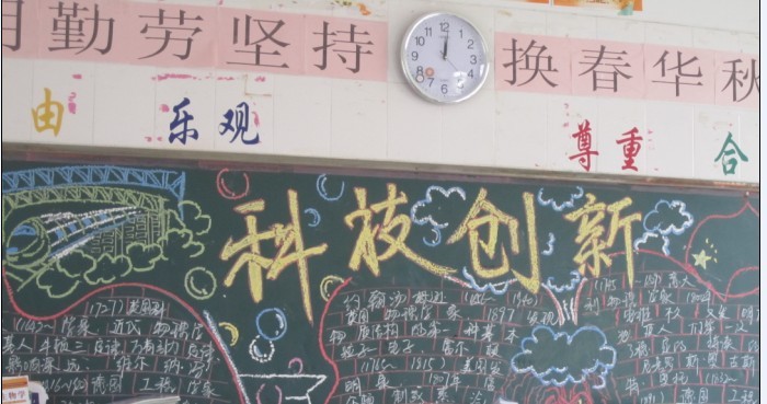 高二各班在班主任的指导下精心准备,群策群力,充分利用课余时间完成。团委学生会成员在评比过程中发现各班黑板报出得都比较优美、细致,黑板报的科技创新主题以及内容画面文字布局合理,不仅显示出了班级黑板报的良好水平,更体现了同学们一丝不苟的精神以及创新意识。