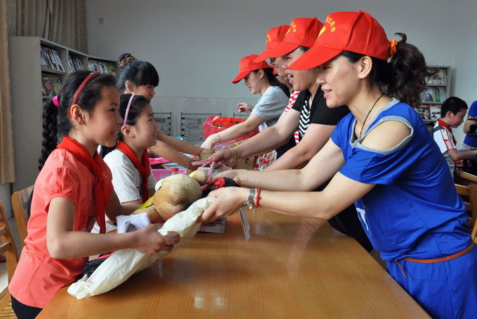 青年团员们带着自己认领的心愿,为结对的11名小朋友送上自行车、手表、新书包、蜡笔、课外书、滑板等礼品。心愿认领结束后,大家又一起玩起了豆豆大变身游戏。看着孩子们脸上洋溢的笑容,志愿者从心底里感到开心。