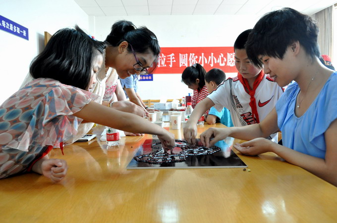 每个孩子都有梦想,每个儿童都有心愿,尤其是贫困少年儿童,他们的心愿更是简单朴实。5月29日下午,濮院镇团委、少工委、关工委联合爱心妈妈工作室,组织青年团员和困难儿童来到濮院镇图书馆,一起参加“手拉手、圆你小小心愿”活动。