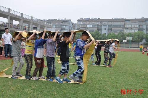 植材小学的嘉年华活动可丰富了,上午是小茅盾素养大赛和童玩游戏考级,下午是队员最喜欢的植材吉尼斯挑战活动。虽然今年的植材吉尼斯只有一个团体的项目“无敌风火轮”,但是每个队员都能参与到活动中,大家异常的兴奋。早在前一天就已经在准备活动的道具了。全班同学通过报纸做成的圆环,分六组进行接力赛,每一组都要站在报纸上滚动圆环前进。在正副班主任老师的指导下,同学们认真地做着热身运动,并聆听着比赛要求,个个雄赳赳,气昂昂,空气里也夹杂着紧张的味道。随着裁判老师一声响亮的口哨声,接力赛正式开始!“加油!加油!加油!”喊声一浪高过一浪,伴随着兴奋的尖叫声和遗憾的叹息声,将比赛推向了高潮。经过了三场紧张激烈的混战,503班以4分49秒86的成绩成为了乌镇植材小学“无敌风火轮”接力赛的擂主。