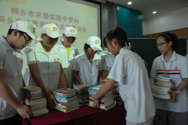 捐完书后有的同学感言:“人们都说书籍是人类进步的阶梯,所以我希望我的捐出的几本书对民工子弟学校的孩子能有一点点帮助。”捐出一本书,虽然只是一个小小的行动,但是也许一本书温暖着很多人。相信求是学子的爱心能为民工子女们打开一扇窗户,使他们在读书中能快乐的成长!
