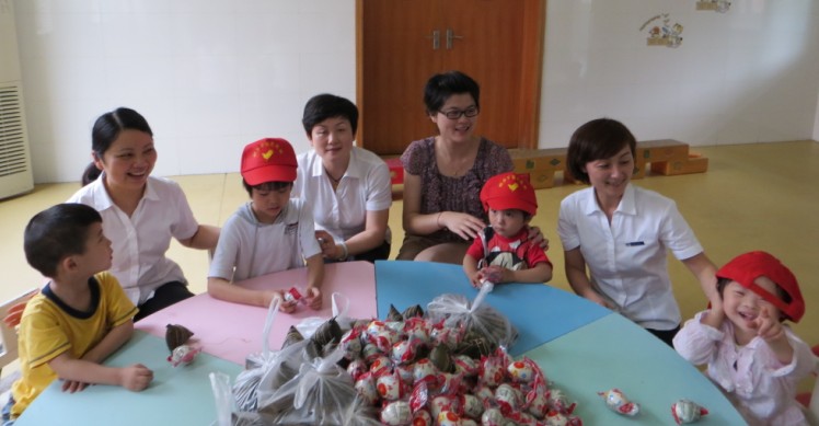 接着,志愿者们拎着事先准备的咸蛋和新鲜出炉的粽子,来到了桐乡福利院看望慰问了残疾儿童们,与他们一起做游戏、一起吃粽子,还询问了他们最近的身体、生活状况。让他们在这样一个温馨、祥和的节日里,体会到了联社青年志愿者们对他们一如既往的关怀。一个个小小的棕子,送去的是不仅仅是联社青年们的关爱,更是整个社会大家庭的那份和谐。