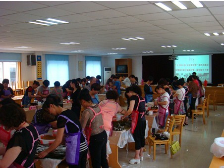 赛前,工作人员认真策划,准备好了糯米、粽叶、肉块、线团等包粽子的材料。下午1点过,参赛人员陆续到场,大家洗干净手跃跃欲试,一些从未包过粽子的选手赶忙寻找师傅,争取能“临阵磨成枪”。2点整,振东新区城南村村长虞正伟介绍了此次比赛的规则,振东新区纪检组长诸月松宣布比赛正式开始。一声令下,大家纷纷拿起准备好的粽叶,争先恐后地亮出了自己的看家本领,粽叶好像有了生命一样,在选手的手指间灵活又柔顺地翻转,转眼之间,一个个棱角分明,包扎结实的粽子就在选手手中诞生了。不等欣赏自己的作品,选手们又接着包下一个了。经过激烈的比赛,根据选手包完规定数量的糯米所用的时间以及美观度,评选出了此次比赛的一等奖一名,二等奖两名,三等奖三名以及优秀奖7名。罗雪芳、唐亚红和钱建凤三位年轻的组级计生联系员夺得了此次比赛的桂冠。