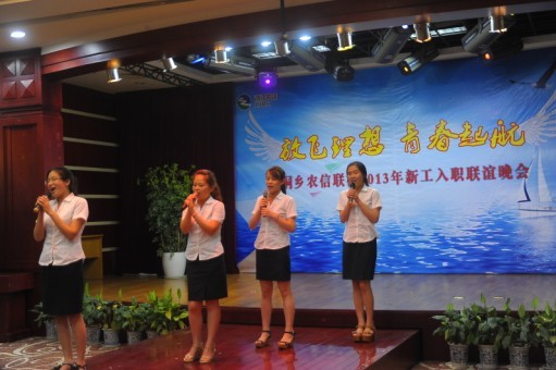 6月17日晚,银园大酒店和平厅内灯火通明,热闹非凡。由桐乡联社团委组织的2013年新工入职联谊晚会在此隆重举行。桐乡联社的青年员工们纷纷上台献艺,为晚会气氛添砖加瓦。