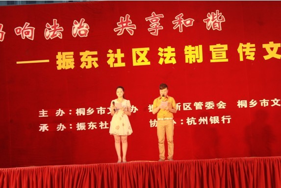 6月16日晚上七时,一场名为“唱响法制 共享和谐”的法制宣传文艺晚会在桐乡市政广场正式上演。数百名市民群众品尝了这道法制宣传教育大餐。