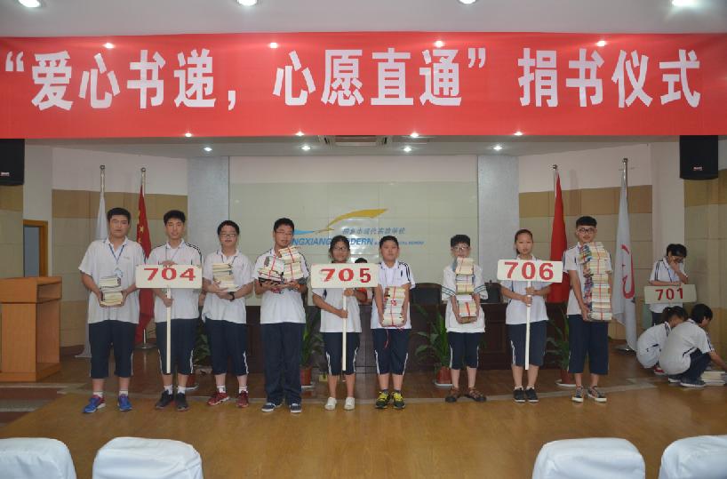 桐乡市现代实验学校团委隆重举行“爱心书递·心愿直通”捐书活动仪式