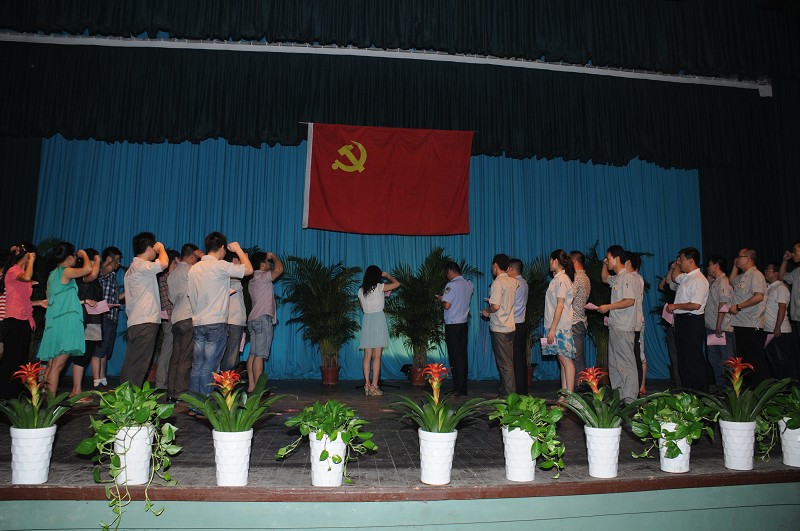 在党的92周年生日之际,凤鸣街道隆重召开表彰会,在会上特别为过去一年来新入党的党员举办了入党宣誓仪式,在这当中大部分是青年党员,例如政法支部的三名党员全部是80后,在退团之际光荣地加入了中国共产党。