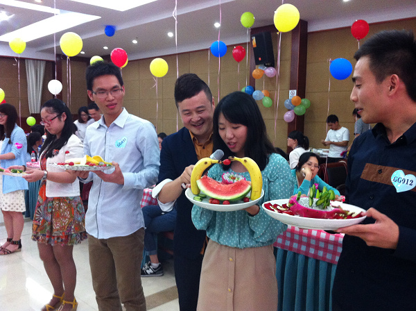 一名参加活动的男生以一曲《一生有你》拉开了联谊会的序幕。本次活动共设计了3个游戏环节,包括水果拼盘、“心有灵犀”和“爱情蹦蹦跳”。在水果拼盘环节,男女嘉宾一起动手制作拼盘,有的处理水果,有的负责造型,分工明确,都创作出了寓意美好爱情的作品。在“心有灵犀”环节,男女嘉宾一个比划,一个猜词,将词语描述的惟妙惟肖,加油声、喝彩声此起彼伏,现场洋溢着热烈欢快的青春气息。“爱情蹦蹦跳”不仅展现了男嘉宾的风采,还为单身青年男女创造了接触的机会。活动最后,主持人邀请自告奋勇的男生向自己心仪的对象表白、献花,引起了现场阵阵掌声。活动中还穿插着抽奖和“众里寻他”等小环节。此次活动得到了现场青年们的广泛好评,现场一位参加活动的嘉宾表示:他很喜欢这种轻松、没压力的交友方式,主办方考虑到我们可能有些放不开,还特别为我们准备了游戏环节,拉近了我们之间的距离,使我们接触起来更自然,希望以后多举办类似的活动。