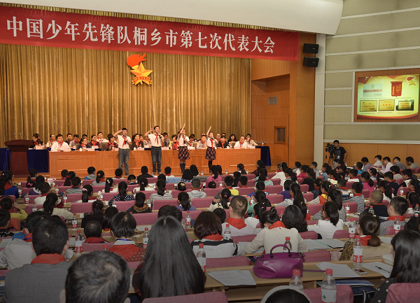 团市委副书记沈小炎代表市第六届少工委作了《高举队旗跟党走 童心共筑中国梦 为全面建设美丽幸福新桐乡时刻准备着》的工作报告,报告回顾总结了市六次少代会以来全市的少先队工作,明确了今后三年我市少先队将大力实施“红领巾导航”、“雏鹰成才”和“固本强基”三大行动。会议选举产生了新一届市少工委委员,桐乡市教育局副局长金剑辉、桐乡团市委副书记沈小炎当选桐乡市少工委主任,钟林、归振华当选副主任。会议上还表彰了桐乡市”十佳少先队队员”、“十佳少先队辅导员”和“十佳少先队志愿辅导员”。