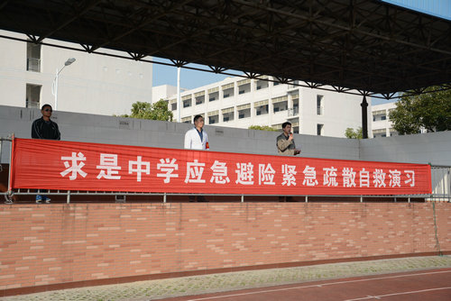 2014 年11 月13日上午,求是实验中学举行了教学楼师生“应急避险、紧急疏散”活动。