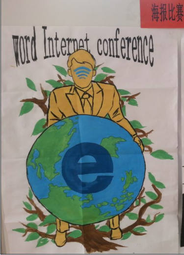 为营造良好气氛,在学生中积极宣传有关世界互联网大会的情况,提升学生对社会热点事件的关注,激发爱国热情,让全校师生感受到这个绿意盎然、秩序井然的江南水乡古镇空气中那种喜悦的气息。桐乡卫校综合部、团委举办了首届“互联互通,共享共治”互联网大会海报设计赛活动。
