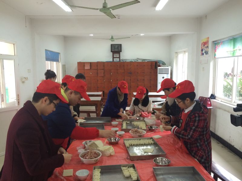 12月3日上午,濮院镇团委组织10名青年志愿者来到敬老院,为老人们包馄饨,献爱心。