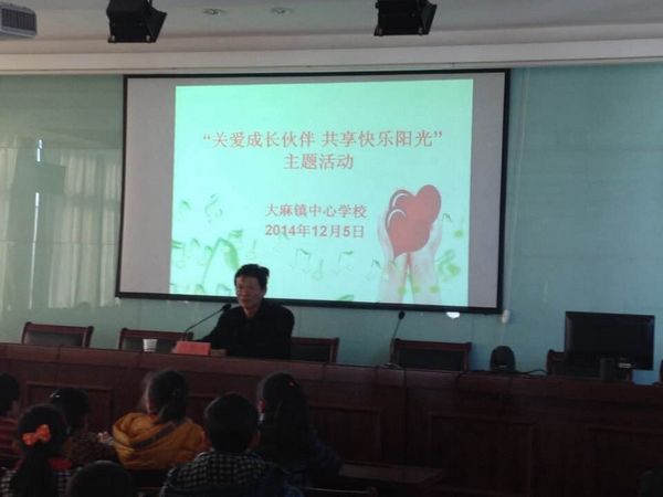团市委还邀请了振东小学吕剑洪校长为大麻镇中心学校的留守儿童们和他们的家长进行了“关爱成长伙伴 共享快乐阳光”讲座。讲座后,还开展了“手工串珠”送远方亲人活动。