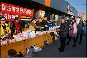 今年12月4日是第一个国家宪法日,也是第14个全国法制宣传日,为进一步加强青少年法制教育,12月4日下午,开发区团工委参加了由计生、综治、司法、残联、民政、三改一拆等多部门在辖区众善村农贸市场开展了一次以宣扬宪法精神、弘扬法治理念为主题的法治宣传活动。