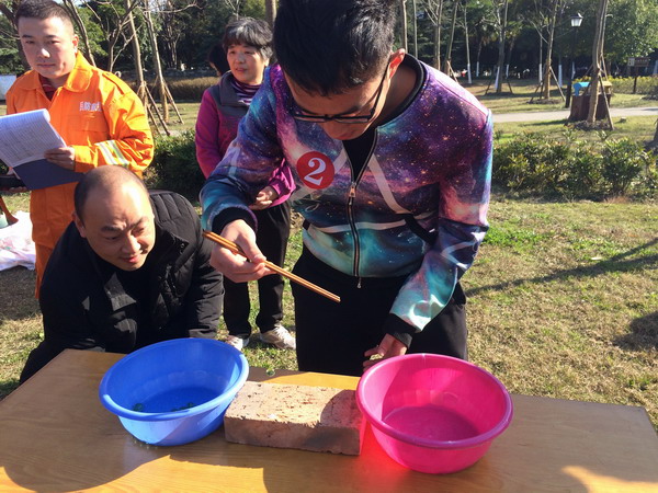 名队员参加了比赛。比赛在欢乐合作的氛围中开始,由抽签决定分为四个小组。各组分别进行了夹弹珠、踏石过河、乒乓球运输、袋鼠跳、送鸡毛信等五个富有趣味的项目。比赛中,我校四名团员虽然被分在不同组别,但是依然热情高涨,参与踊跃,同组内队员配合默契,展现了良好的团结协作精神。