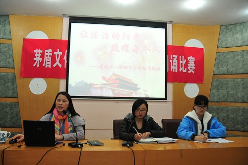 许主任的授课条理清楚、文字严密、内容生动、联系实际、图文结合,她给大家带来了今年最新最热的话题——依法治国。本次党课主要围绕三个内容展开:一,十八届四中全会的概况;二,四中全会最重要主题依法治国的内涵和意义;三,生活中依法治国的应用与案例。许主任首先回顾了以往几届四中全会的主题,引出今年会议的重要文件《中共中央关于全面推进依法治国重大问题的决定》,重点强调全面推进依法治国的5个体系,全面推进依法治国六项重大任务。并联系国情解释了依法治国的内涵,提醒大家今年新的内涵定义,“人民当家作主”。