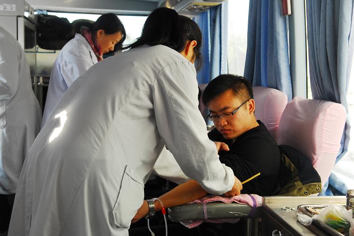为全面响应自愿献血的号召,市建设局团委动员广大团员青年积极参加无偿献血活动,发扬“人道、博爱、奉献”精神。12月26日上午,义务献血活动在建设局八楼进行。献血现场,大家认真填写义务献血登记表,并配合医务人员完成必要的身体健康状况调查,检查合格者再进行血型化验并上车献血。