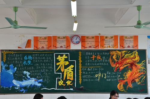 2014年12月30日,茅盾中学团委组织学生会对高二以“茅盾文化”为主题的黑板报进行检查。本次黑板报历史一个月,横跨“茅盾文化节”,在宣传茅盾文化、弘扬传统经典方面起到了潜移默化的作用,同学们用文字抒写茅盾文化的精髓,用图画勾勒茅盾坚毅瘦骨的背影,用颜色涂鸦茅盾作品的风格色彩,用黑板框出茅盾一生的辉煌。